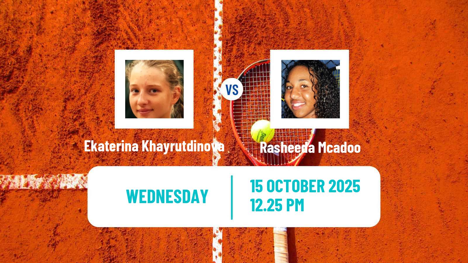 The latest head-to-head matches between Ekaterina Khayrutdinova - Rasheeda Mcadoo were as follows: